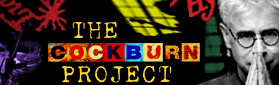 ![]() Above: A more recent and temporary Project logo, from 'The Cockburn Project' transition phase. The design is a busy collection of blurred primary colour motifs from Cockburn's The Charity Of Night and Breakfast In New Orleans, Dinner In Timbuktu albums. |